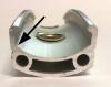 Du mäter omkretsen där däcket ska sitta. ( Där pilen på bilden visar. ) Vissa fälgar har en liten upphöjd kant på insidan, då ska du mäta uppe på den kanten.