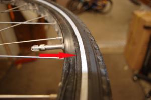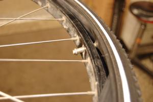 1. Börja med att ta loss hjulet från cykeln. Skruva bort ventilen och ventilringen.