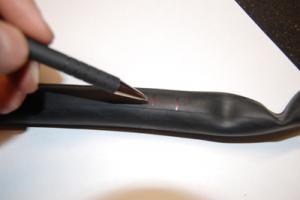 4. Gör en markering där hålet är. En bläckpenna brukar fungera bra.