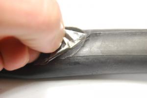 9. Dags att lägga in slangen i däcket igen. Det är noga att slangen hamnar rätt och inte tvinnar sig.