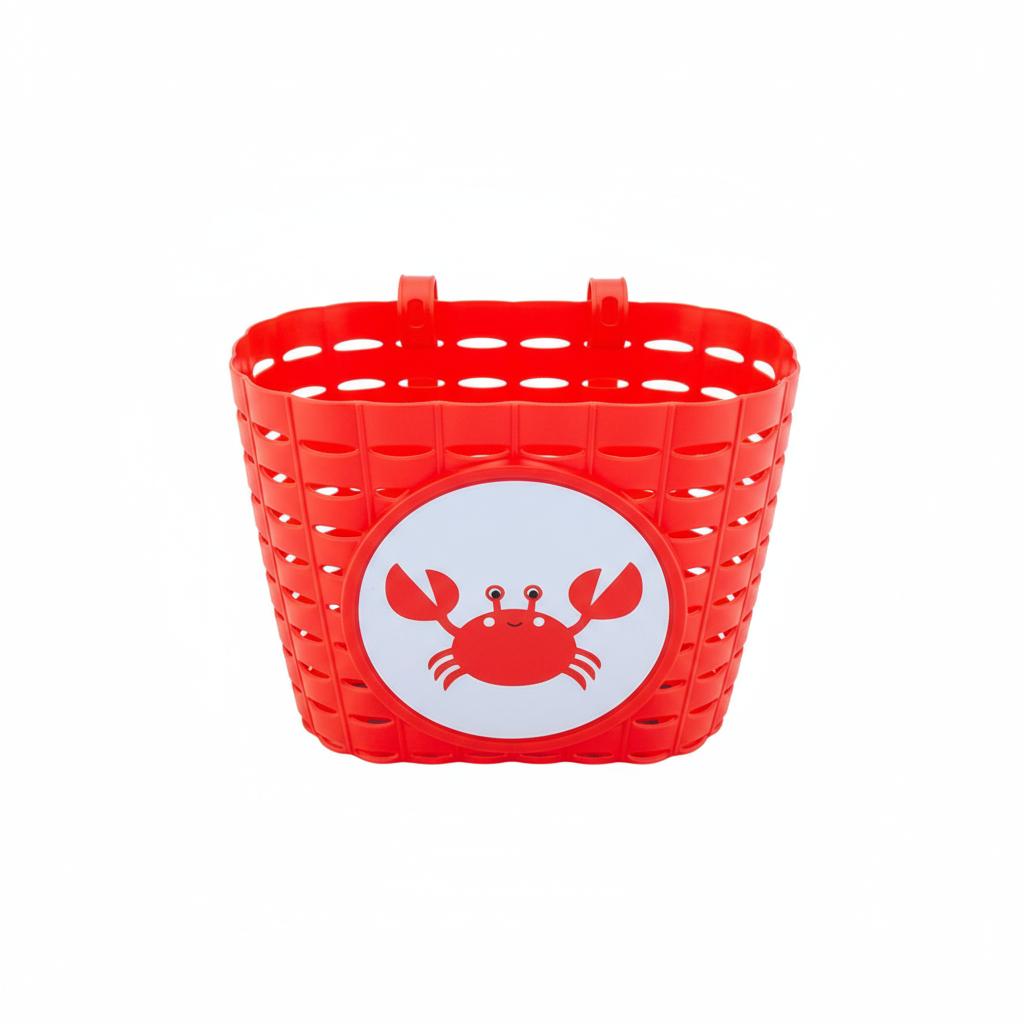 Ge barncykeln en rolig, färgstark och lekfull look med denna cykelkorg i klarröd plast, prydd med ett charmigt krabbmotiv. Den glada krabban gör cykeln extra personlig och blir snabbt en favorit hos yngre cyklister.