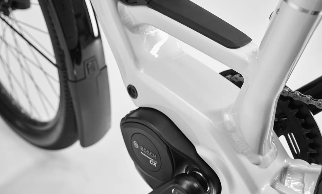 Bosch Performance Line CX-motorn ger dynamisk och naturlig assistans upp till 25 km/h (EU), medan Intuvia 100-displayen och LED-fjärrkontrollen gör varje körläge tydligt och enkelt att hantera. Den mjuka fjädringen från SR Suntour och de breda Schwalbe G-One-däcken ger komfort och stabilitet på både asfalt och grus.