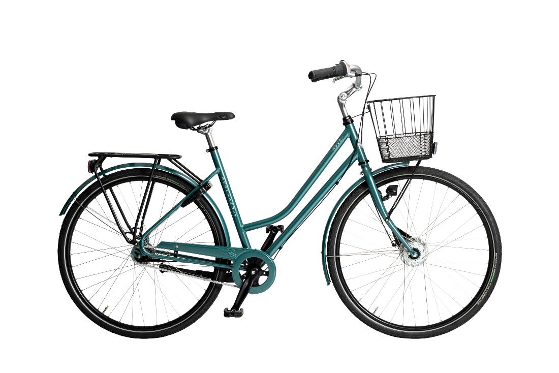 Modellen är utrustad för bekväm vardagscykling: navgenerator för batterifri belysning, ställbar styrstam för optimal sittposition och komponenter som kräver minimalt underhåll. Med fast korg, AVS+-pakethållare och godkända säkerhetslösningar är den lika redo för pendling som för ärenden i stan.
