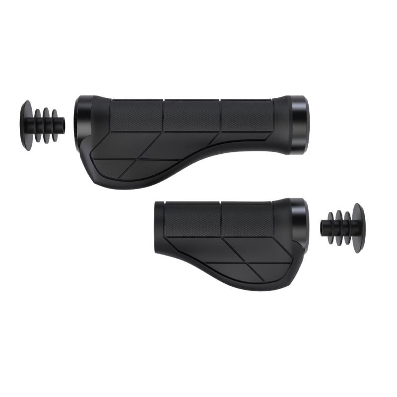 Ergonomiska MTB-handtag med dubbel lock-on, extra stoppning och förbättrat grepp för längre turer.