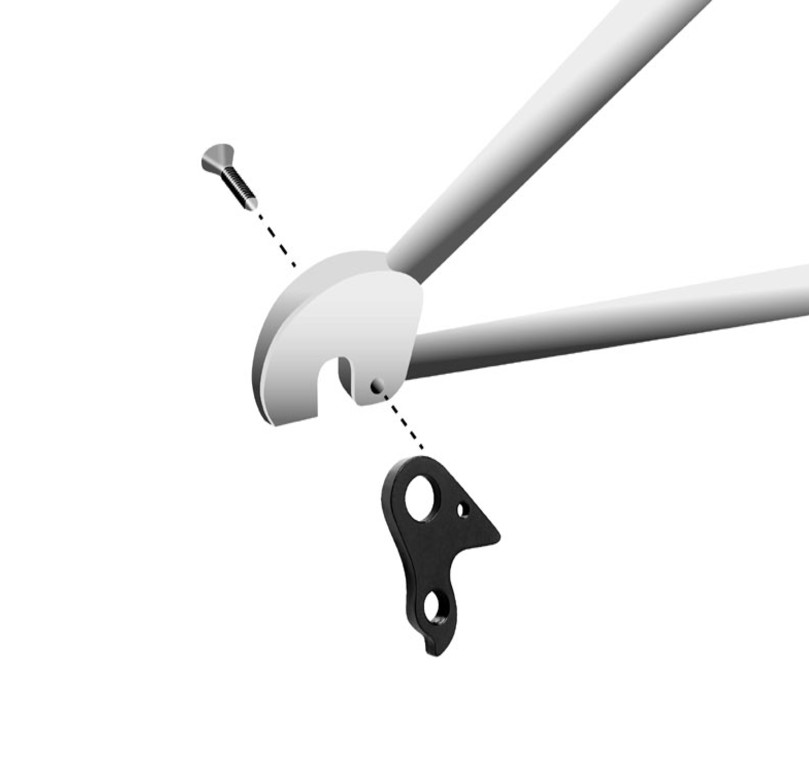 Växelöra Haibike GH-300 Union. Montering från utsidan med en skruv och gänga i ramen